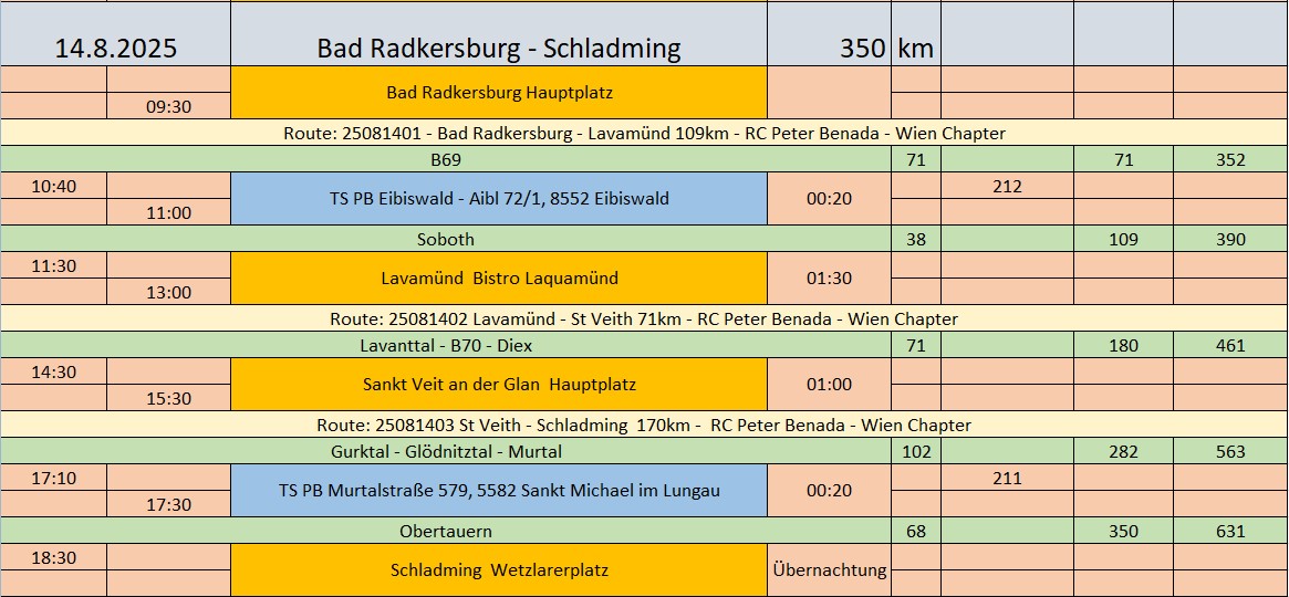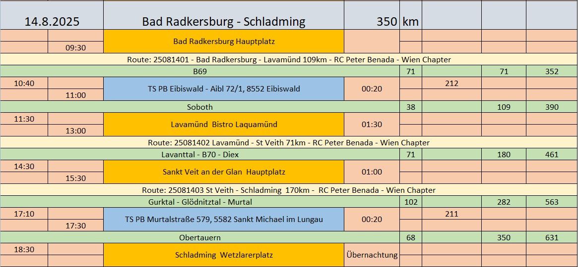 Von Bad Radkersburg führt eine atemberaubende Route nach Kärnten, mit einem Stopp in Lavamünd. Hier werden die Biker mit Live-Musik der Band „The Three Monkeys“ empfangen, bei freiem Eintritt zum malerischen Badesee. Der nächste Halt ist in St. Veit an der Glan, wo das „Wheels for Charity“-Fest stattfindet. Hier sorgt die „Westbahnhof Combo“ für musikalische Unterhaltung und Airbrush-Künstler Martin Zuschnig für kreative Akzente. Der Tag findet seinen krönenden Abschluss in Schladming, bei einem Event, das die Gemeinschaft stärkt und wo TV-Liebling Harry Prünster zur Großzügigkeit für den guten Zweck aufruft.