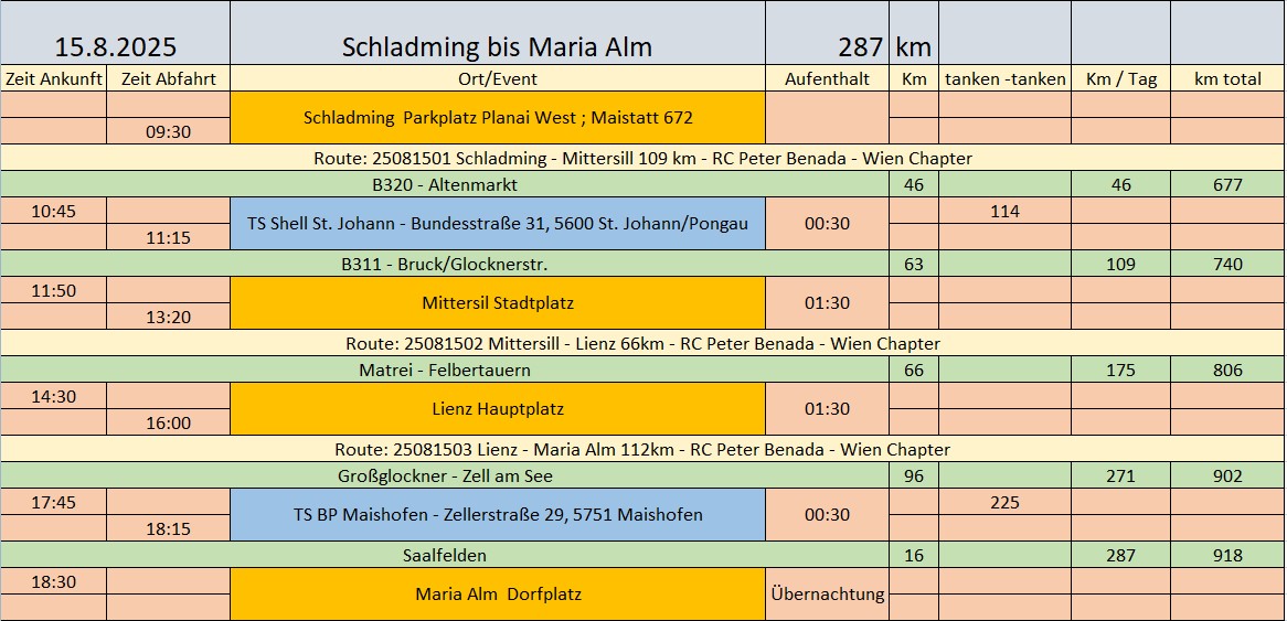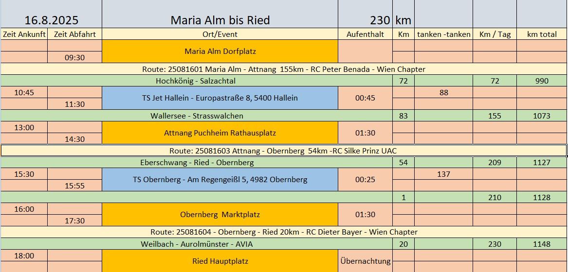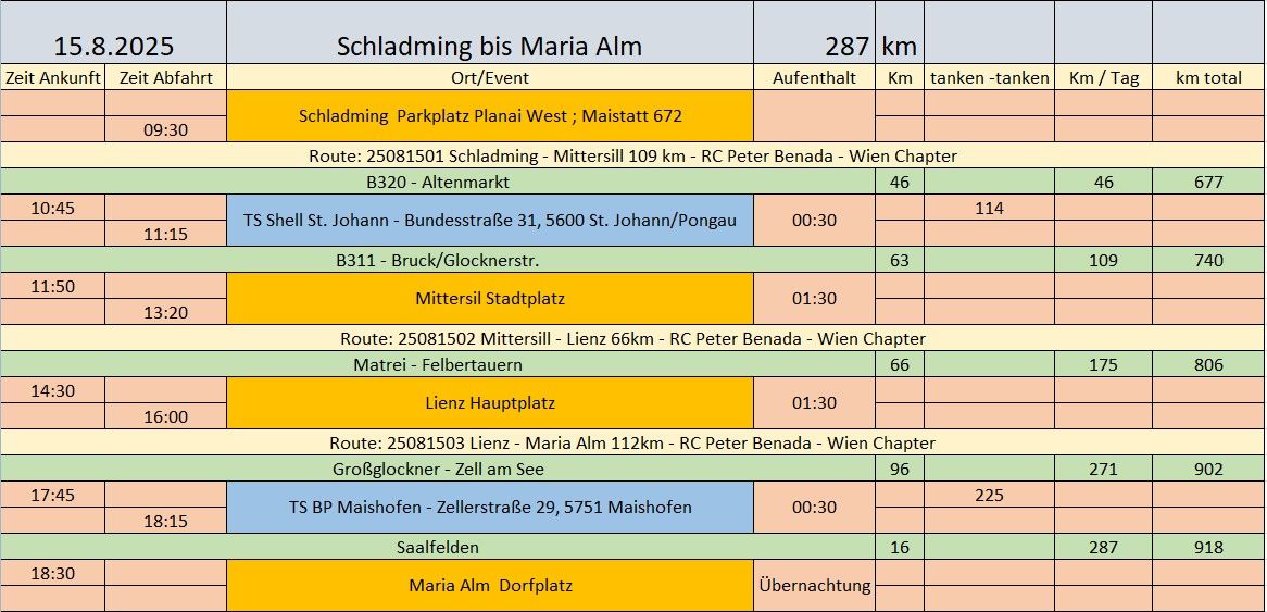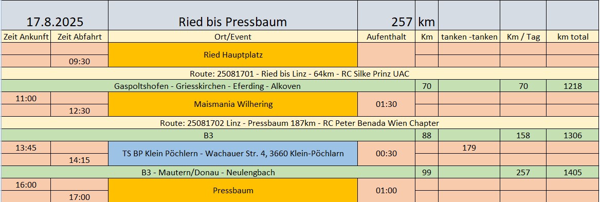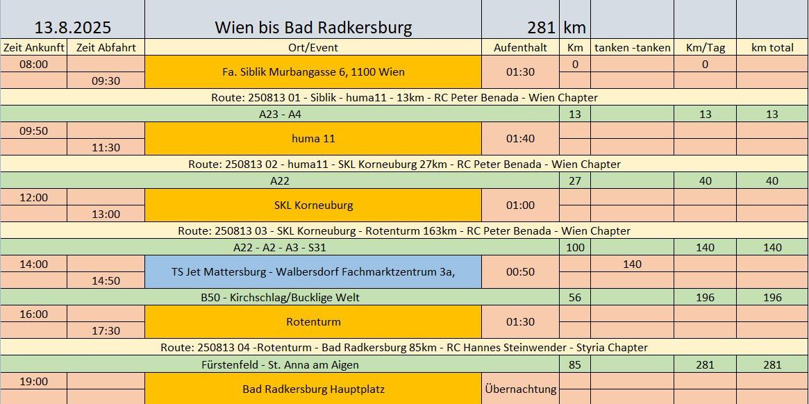 Gepäckabgabe: Dienstag 12. 8. 2025 17:30-20:00 bei Fischer´s Harley Davidson Wien