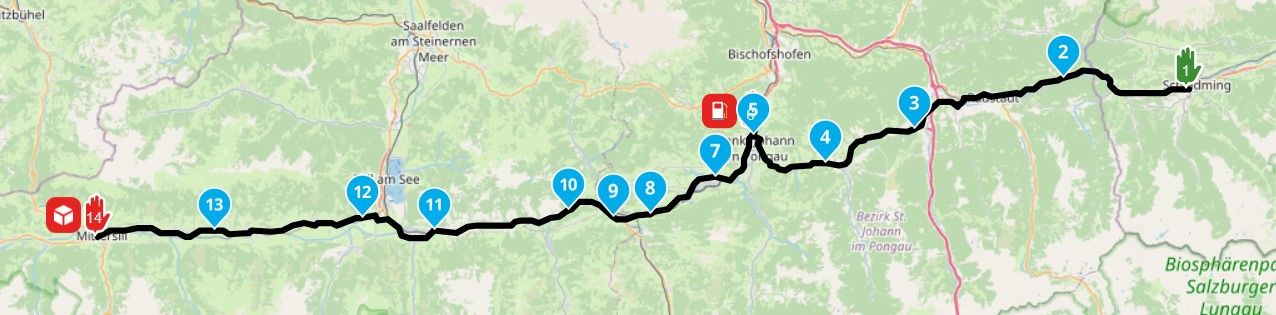 Nach Stärkung der Mitfahrer und des Spendenkontos am 15. August beim Street Food Market in Mittersill wurde in der Sonnenstadt Lienz ein traditionell spendenträchtiger Stopp eingelegt. Daraufhin konnten die Teilnehmer als fahrerisches Highlight der Tour die atemberaubende Kulisse des Großglockners genießen, bevor der malerische Dorfplatz in Maria Alm und Harry Prünster mit Versteigerungen die Besucher dort zum Geben motivierte.