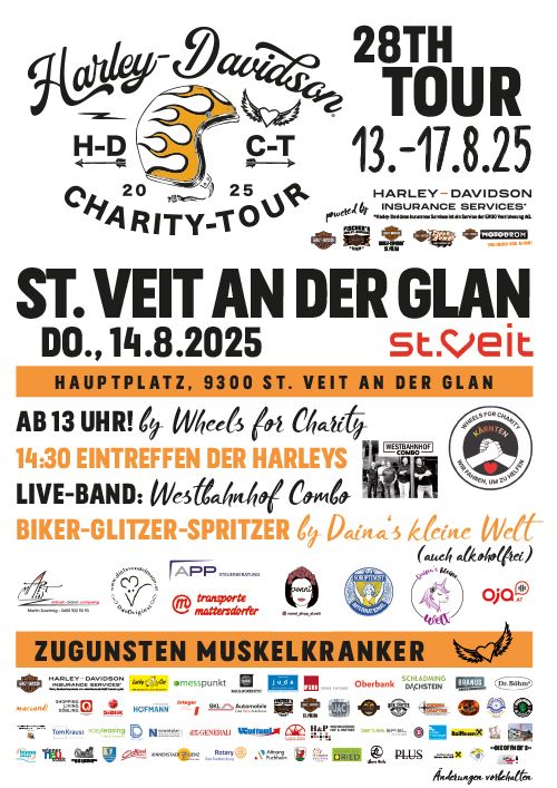 Wheels for Charity ist der Veranbstalter des Festes in Kooperation mit der Stadt St. Veit an der Glan. Die Veranstaltung findet am Hauptplatz St.Veit/Glan statt.